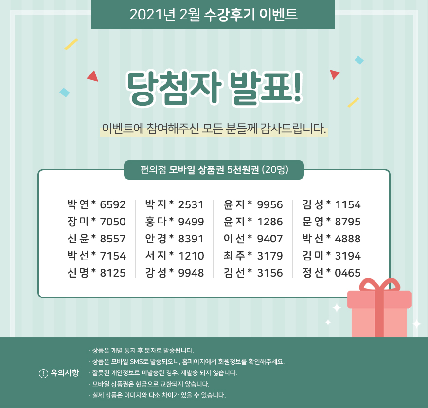 [이벤트] 2021년 2월 수강후기 이벤트 당첨자 발표!